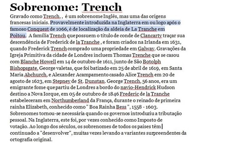 FAMILIA TRENCH, UMA FAMILIA COM REGISTRO HÁ MAIS DE 1000 ANOS