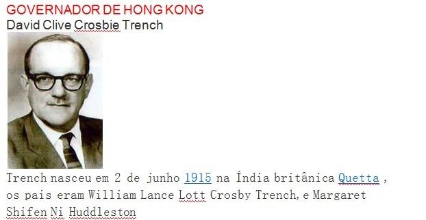 Outro membro da família Trench foi Sir David Clive Crosbie Trench ,Governador de Hong Kong , de 1964 a 1971. Ele era descendente de John Trench, irmão mais novo do primeiro Baron Ashtown.