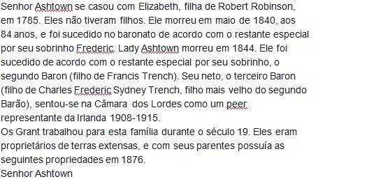 REDERICK TRINCHEIRA (1755-1840), foi elevado à nobreza, como o Baron Ashtown, de Moate ., no condado de Galway