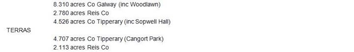 Em County Roscommon que ocupou mais de 1.000 hectares; e no Condado de Tipperary ocupou pelo menos 21 townlands nas freguesias de Ballingarry e Uskane, baronato da Baixa Ormond, herdada da família Sadleir de Sopwell Hall.