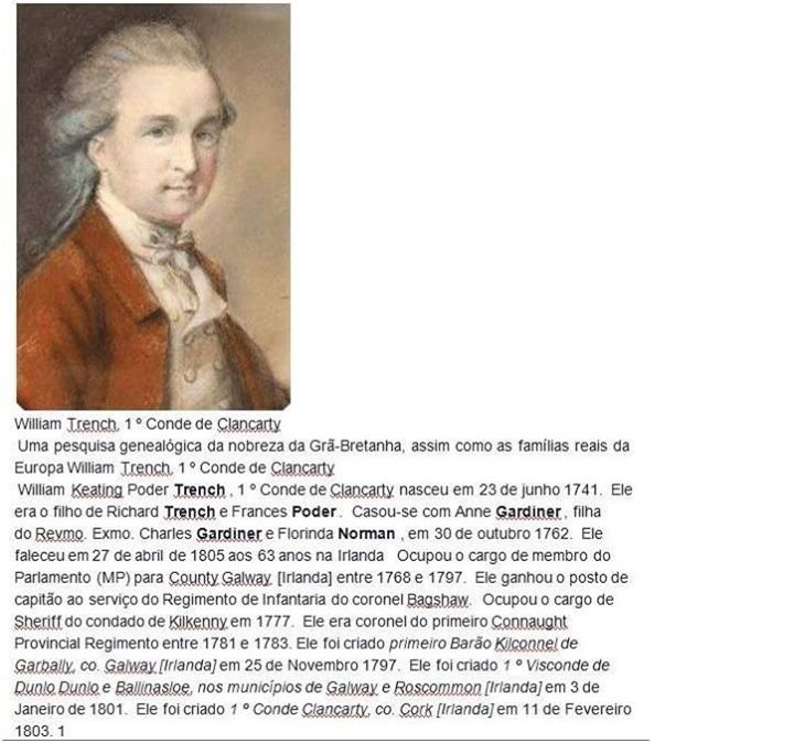 FREDERICK TRENCH , de Moate, County Galway. Este cavalheiro casou e foi sucedido por seu único filho sobrevivente,