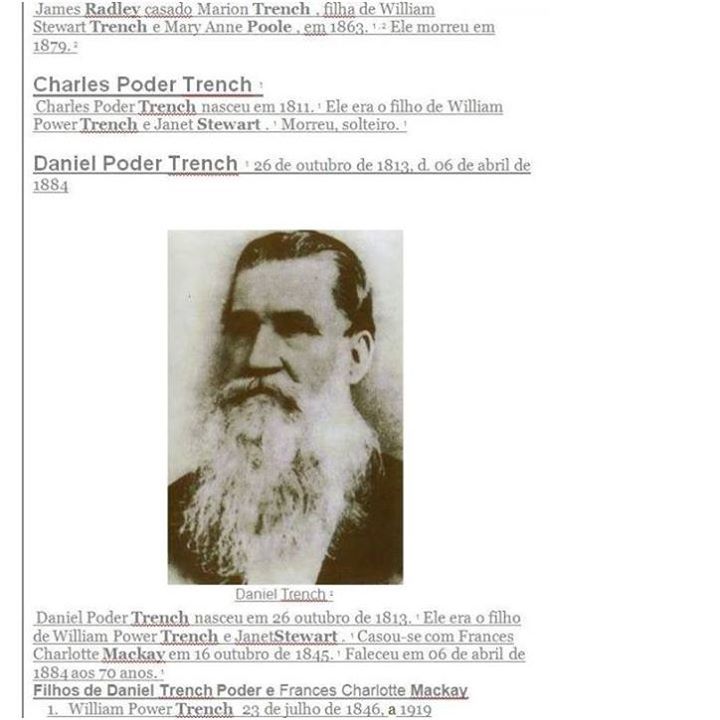 Pedigree das mais antigas da família Trench para resolver na Irlanda, uma série de variações do que ocorrem em fontes.